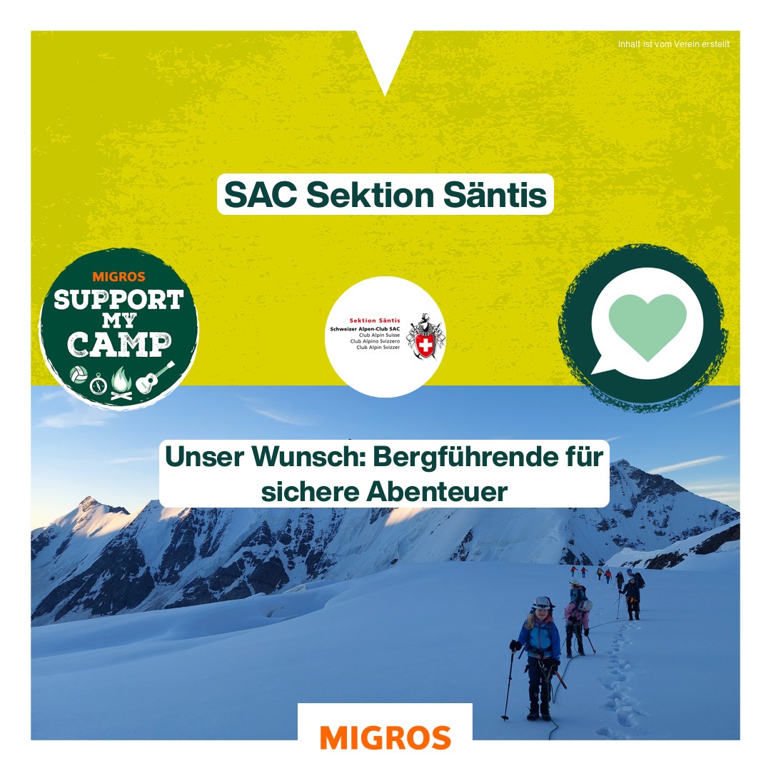 Sammle Migros Vereinsbons für die SAC Sektion Säntis und ermögliche Kindern sichere, geführte Bergcamps voller Abenteuer und Gemeinschaft.