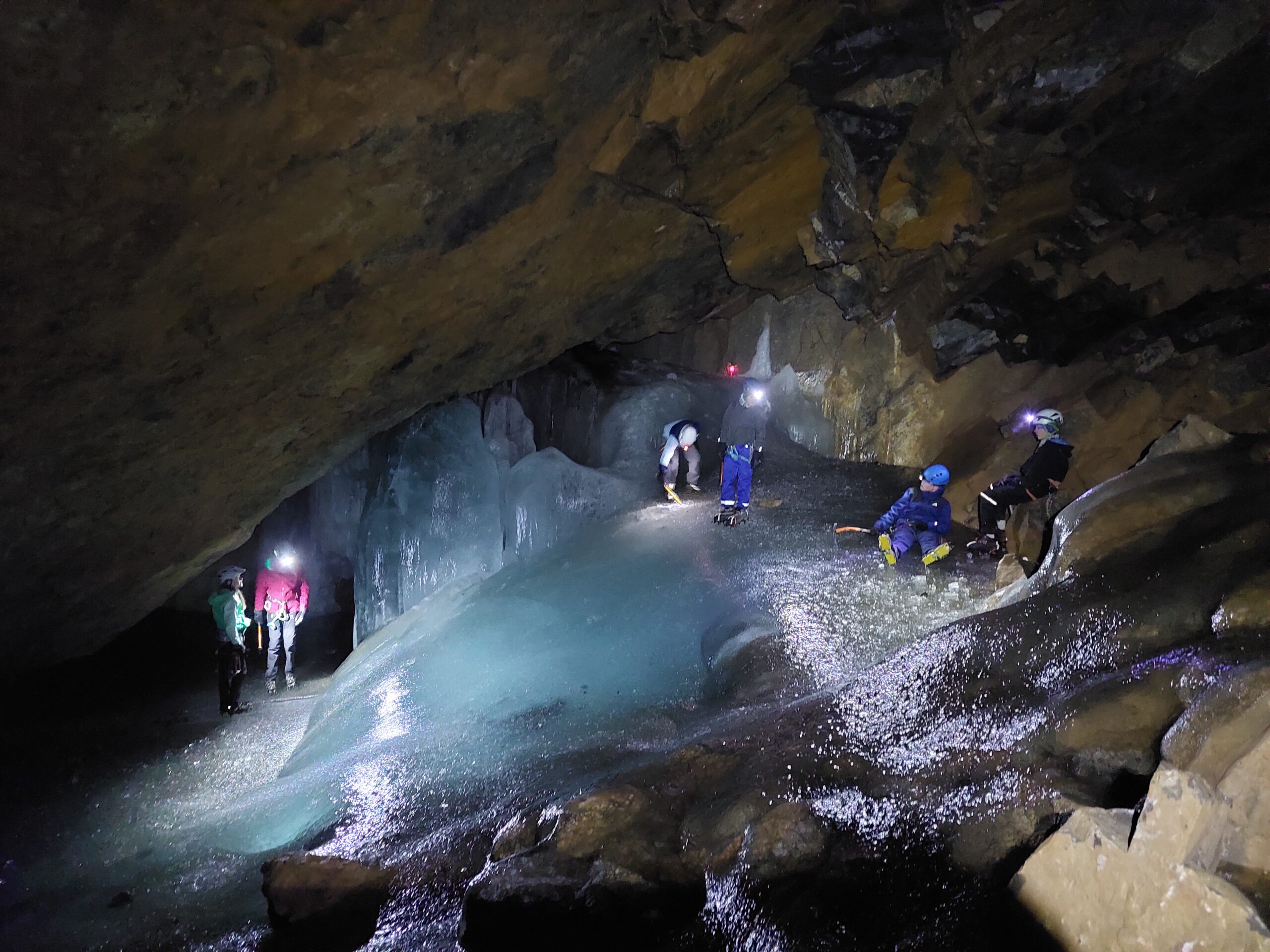 Der Tag startete in dem wir uns um 8:15 Uhr in der Schwägalp trafen. 😊 Das Wetter war zwar trocken aber sehr bewölkt. ☁️ Nach einem langen Marsch über die Viehalpen konnten wir endlich in die Felswand einsteigen. 🪨Teilweise wegen der Nässe am Seil 🪢 gesichert stiegen wir über die Nasenlöcher hoch zur Eishöhle. Nach einer kurzen Stärkung konnten wir uns mit Steigeisen und Stirnlampe in die Höhle abseilen. Es war mega Cool 🥶dort unten, aber trotzdem waren wir froh wieder ans Tageslicht zu kommen, beim Weitermarsch konnten wir unsere Eisfinger und Eisfüsse wieder aufwärmen. Über die Himmelsleiter 🪜 kamen wir am Säntis an und freuten uns auf die Bahnfahrt 🚡nach unten. Alle waren müde 🥱 aber glücklich und um einige coole Erlebnisse reicher. Roger, Andi und Francine vielen Dank 😃 für die super Leitung und den mega lässigen Tag!