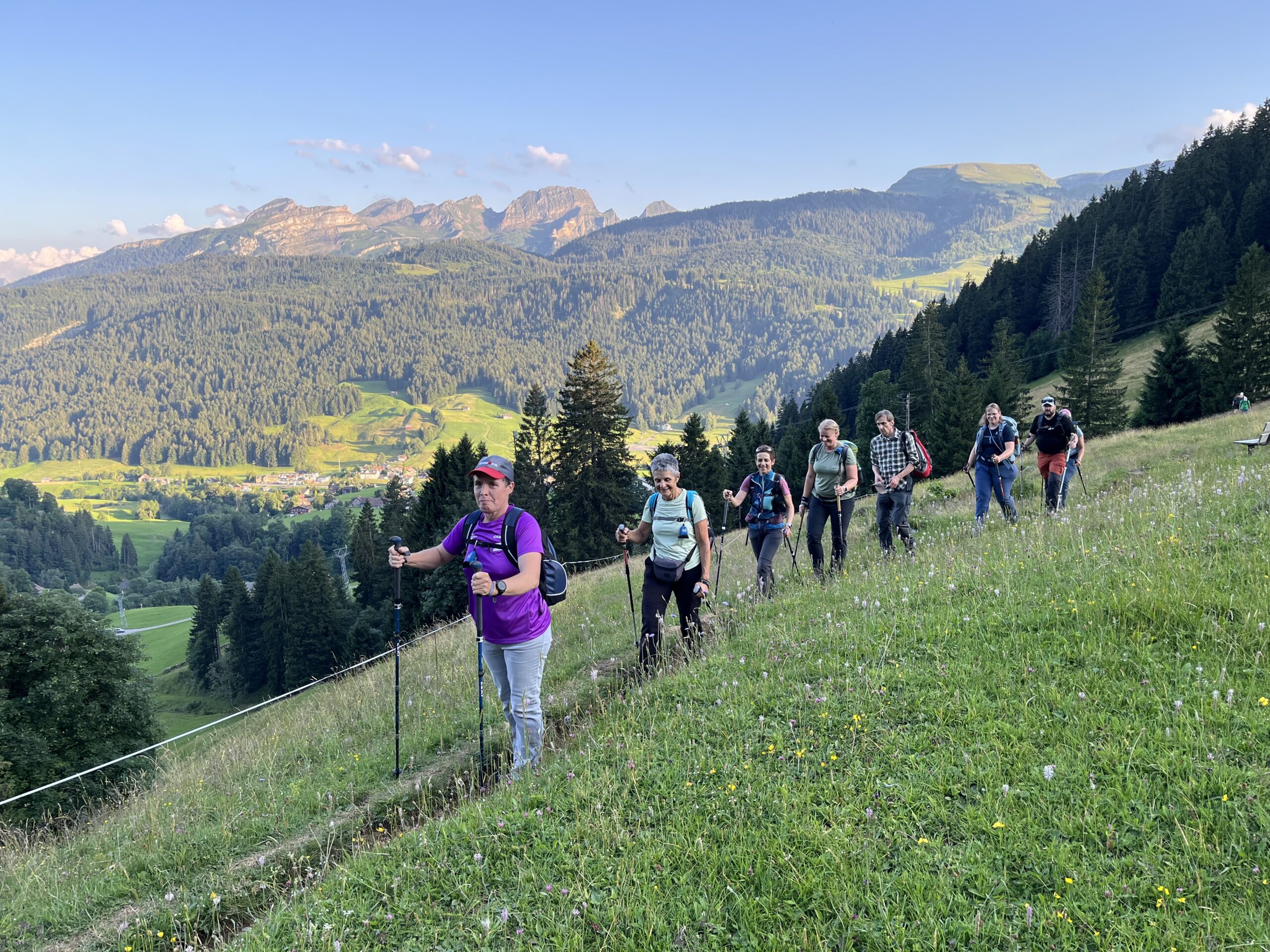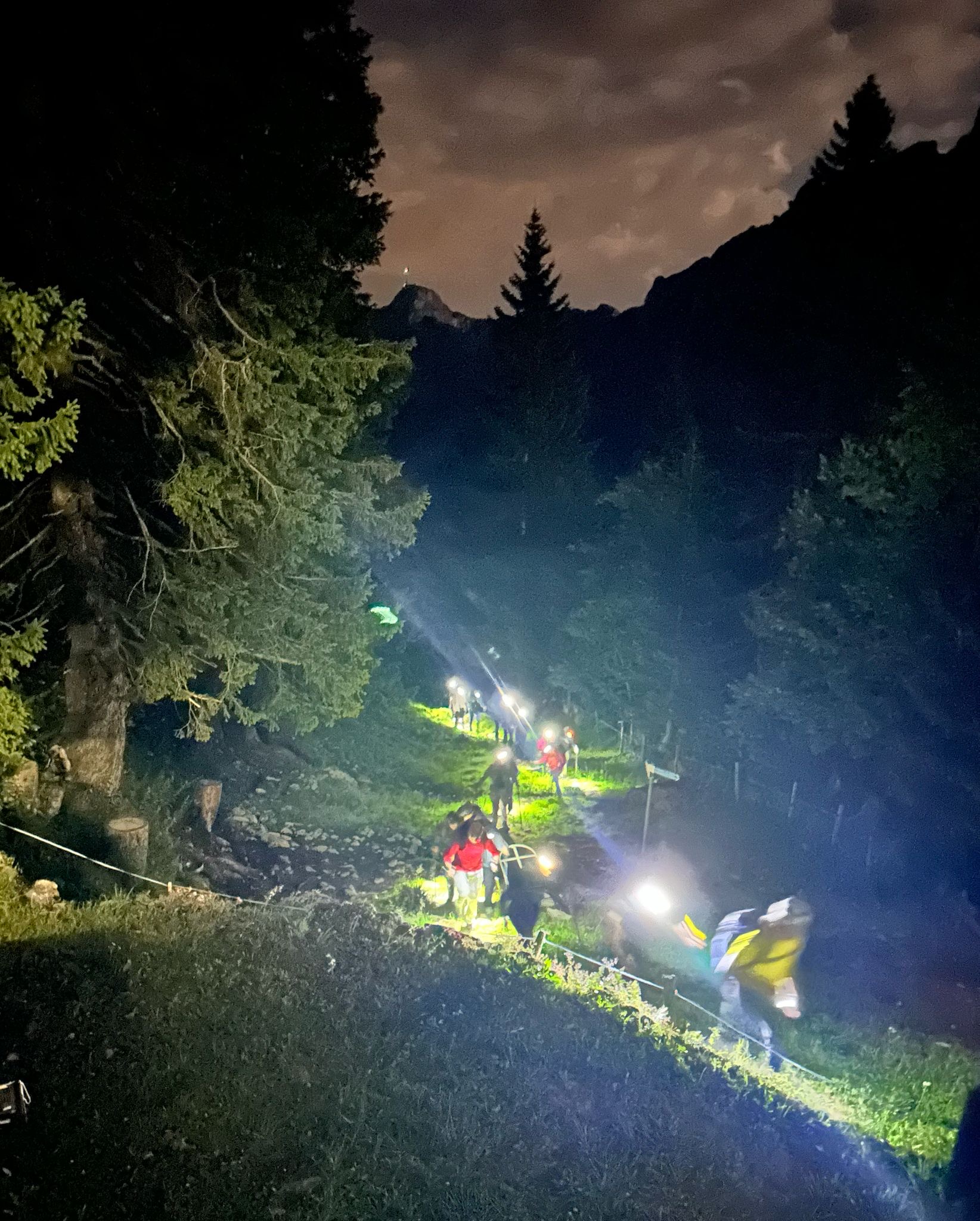 Am Wochenende des 12./13. Juli 2025 wurde in der Nacht schweizweit gewandert, auch im Alpstein. An einer gemeinsamen Tour der St. Galler Wanderwege sowie der SAC Sektionen Toggenburg und Säntis machten sich 38 Wanderinnen und Wanderer in Wildhaus auf den Weg und stiegen bei langsam einbrechender Dunkelheit gemeinsam hoch zur Zwinglipasshütte. Dort wartete die erste Stärkung des Abends: ein Teller Spaghetti, liebevoll zubereitet vom Team von Christa Gschwend. Um Mitternacht führte die Route mit Stirnlampe und Wanderstöcken hinunter zum Fählensee. Der nächste Aufstieg ging hoch zur Hundsteinhütte, wo Moni Eberhard und ihr Team eine Suppe auftischte, die neue Kräfte weckte. Noch vor dem ersten Morgengrauen ging es auf die letzte Etappe Richtung Brülisau. Zur Belohnung gab’s im Restaurant Rössli zum Abschluss Kaffee und Gipfeli – ein stimmungsvoller Ausklang einer unvergesslichen Nacht.