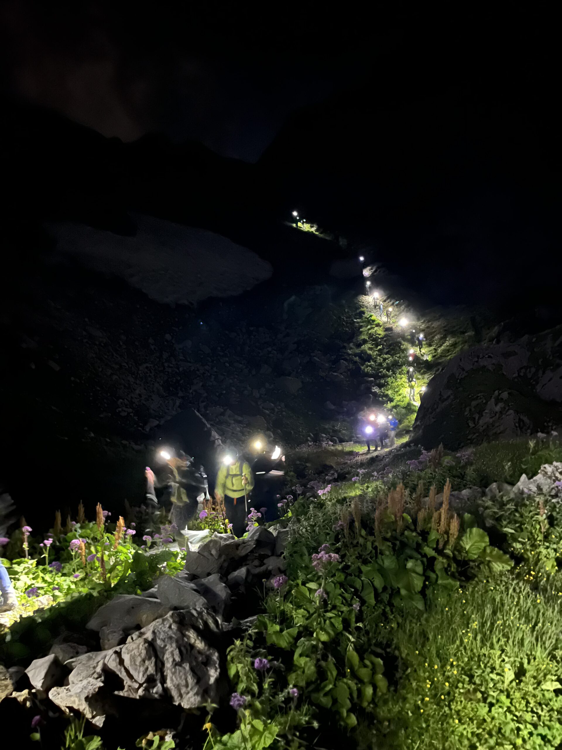Die drei Wanderleiter Astrid Fässler, Bruno Jäger und Stefan Frei führten die Teilnehmenden ohne Zwischenfälle durch die dunkle Nacht im Alpstein. Auch Ihnen sei herzlich gedankt.
